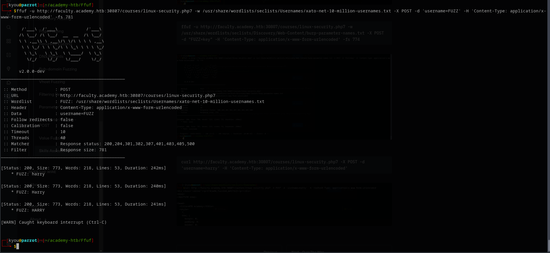 ffuf -u http://faculty.academy.htb:30807/courses/linux-security.php7 -w /usr/share/wordlists/seclists/Usernames/xato-net-10-million-usernames.txt -X POST -d 'username=FUZZ' -H 'Content-Type: application/x-www-form-urlencoded' -fs 781