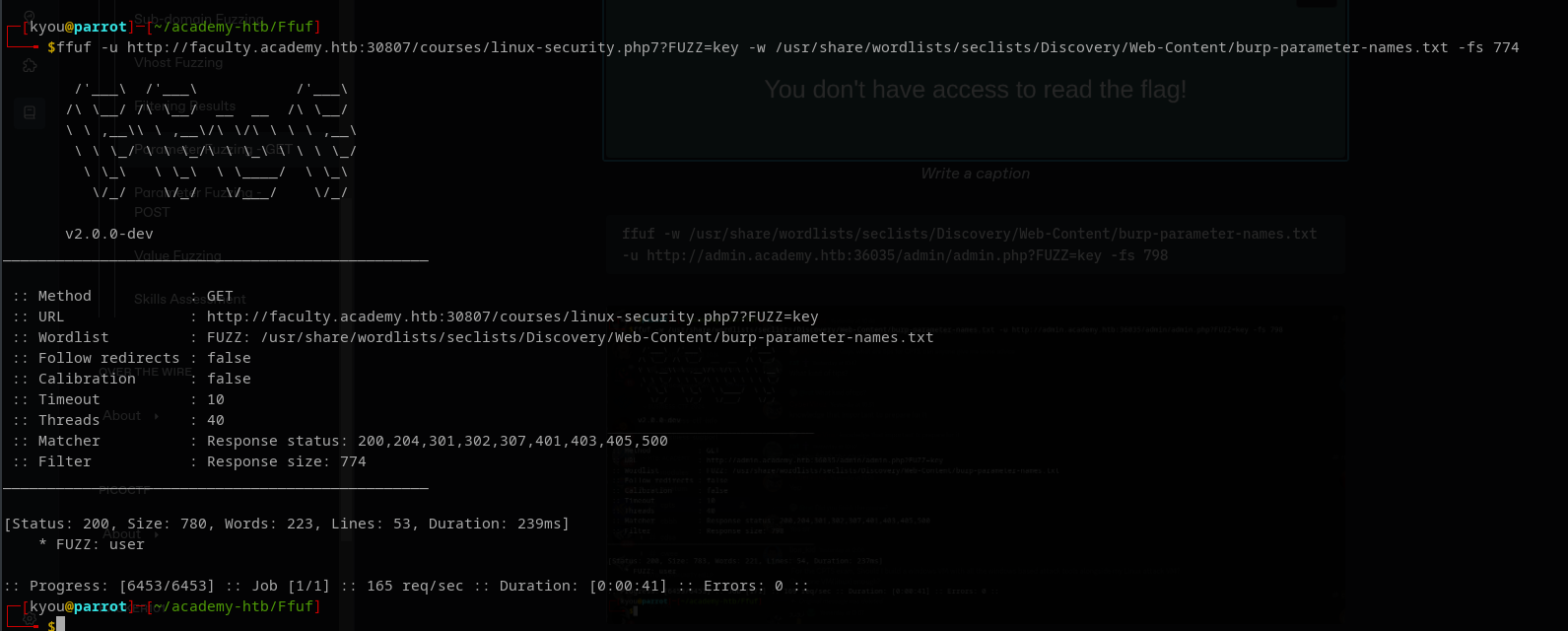 ffuf -u http://faculty.academy.htb:30807/courses/linux-security.php7?FUZZ=key -w /usr/share/wordlists/seclists/Discovery/Web-Content/burp-parameter-names.txt -fs 774