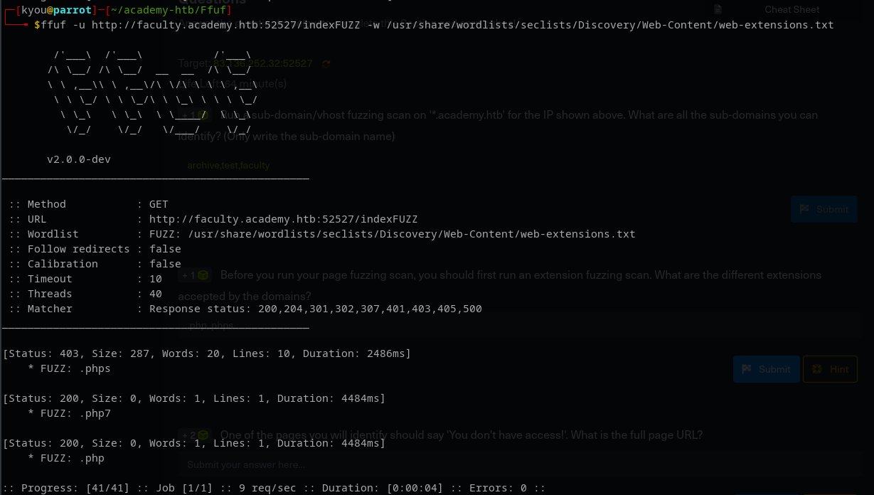 ffuf -u http://faculty.academy.htb:52527/indexFUZZ -w /usr/share/wordlists/seclists/Discovery/Web-Content/web-extensions.txt
