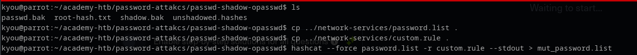 hashcat --force password.list -r custom.rule --stdout > mut_password.list